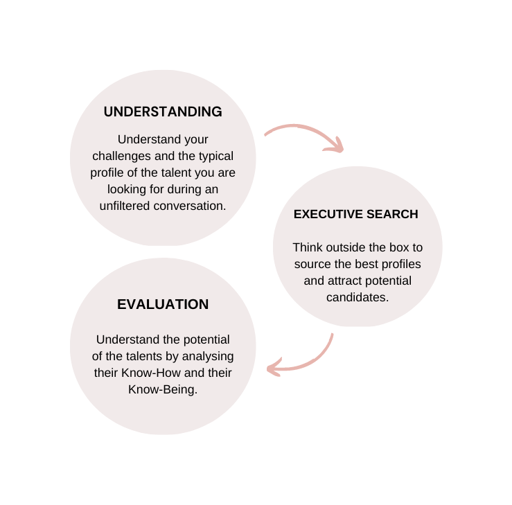As a Talent Hunter and Executive Search Consultant, my job is to accompany companies in their search for new talent, by finding the candidates who correspond to their challenges and objectives; whether for vacant positions, job creations, or temporary replacements.